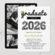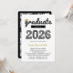 Bold Gold 'Graduate' Typography Scribbles With A Black Graduation Cap / Mortar Board Accent On A White Background, Class Of 2024 Graduation Party Invite Card.