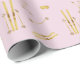 Gold Skis And Poles | Retro Ski Pattern Pink Wrapping Paper
