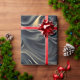Gold abstract smoke swirl pattern on black with aqua accent colour