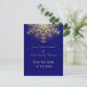 Gold snowflake on blue winter wedding Save the Date postcard that features a golden snowflake on blue background. This personalised design is a fully customisable template and is part of a wedding set perfect for a winter or Christmas wedding.