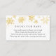 A book request insert card for baby shower. Featuring gold snowflakes and poem: "ONE SMALL REQUEST, WE HOPE NOT TOO HARD