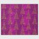 Gold Snowflake Christmas Trees on Pink Silk Wrapping Paper