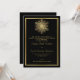 Gold snowflake on black elegant winter wedding invitation