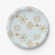Gold Snowflake on Frosty Blue Christmas Pattern Paper Plate