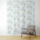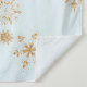 A tapestry with a festive holiday repeating pattern of chic gold snowflakes drawn with elegant crystal shapes. A frosty light blue background.