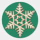 Gold Snowflake on Green Holiday Classic Round Sticker