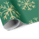 Gold Snowflakes Green Christmas Holiday Gift Wrapping Paper