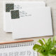 Card envelope with an insert of gold snowflakes on dark blue background. Customisable return address too.