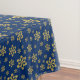 This festive holiday table cloth features a pretty pattern of gold snowflake images in varying sizes on a dramatic dark blue background. Elegant and festive for any winter occasion, especially for entertaining during the Holiday season!