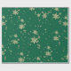 Sparkling gold snowflakes on a solid forest green background makes for a perfect neutral holiday wrapping paper.