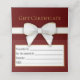 Luxurious and rich holiday design featuring a splendid Christmas tree silhouette with golden snowflakes. Decorated with a white gold gift bow on a red lush background. This festive gift certificate is perfect for your small business or to gift friends and family.