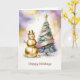 Beautiful Gold Snowman Christmas Tree Holiday Card