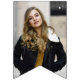Elegant faux gold sparkle bunting flags decoration for a high school or college graduation party. Chic, modern signage with 2 photos of your graduate that reads Class of 2024. Add your favourite two senior photographs.