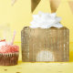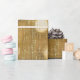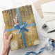 A gorgeous gold wrapping paper with a glittery curtain pattern.