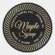 Prominent border with metallic gold gradient on black background. "Maple Syrup" is written in an elegant script font and the descriptive text is written in a fancy modern text. Choose your volume from a list of pre-calculated common sizes.