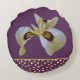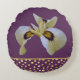 Gold Splashes and Cream Siberian Iris on Purple Round Cushion