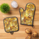 GOLD STAINED GLASS MOSAIC LOOK OVEN MITT & POT HOLDER SET