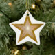 Modern design with a shining, sparkling gold and white star on a white background. Star-shaped christmas tree ornament with a gold and white customisable design for you to personalise with your own text, images and ideas. Created by Jess Perry using original photographs and digital techniques.