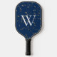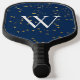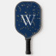 This pickleball paddle design features a dark navy blue night sky, with scattered faux gold stars. Fun and unique. Personalise it with an initial. Makes a great gift! Created by Simply Farmhouse Press.