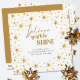 Believe Sparkle Shine, modern and elegant personalised holiday card. The card is decorated with gold stars and lettered in script calligraphy and festive typography. Simple minimal typography design framed with an abundance of golden stars. The template is ready for you to personalise the greeting and add your name(s).