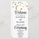 Adding a touch of celestial magic, the words "Welcome," "Ceremony," and "Wedding Party" are intricately adorned in a captivating script font. These embellished script elements echo the celestial theme, lending an air of enchantment to the program. The delicately crafted script fonts introduce a whimsical and mystical element, aligning seamlessly with the celestial inspiration.