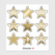Sticker set with nine gold stars feauring various surface textures. Note that this is a printed product and not actually shiny. These fun cut out stickers are perfect for scrapbooking, journalling, gifts and decoration.