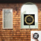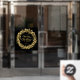 A gold wreath of dots and stars and the words - We Wish You a Merry Christmas and a Happy New Year are featured on this window cling. Choose ANY SIZE and **front or back cling. (Size shown is 24" x 24", but can be made larger or smaller.)
