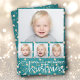 Gold Stars on Turquoise Multiple Photo Christmas Holiday Card
