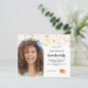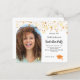 Add your own vertical size photo of the graduate. An arch shaped photo frame. A classic white background colour, decorated with faux gold stars. Personalise and add a name and party details.
