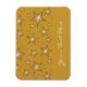 Modern design with "shining" gold and white stars on a dark yellow background. Fridge magnet with a customisable design for you to personalise with your own text, images and ideas. Please note that this is a printed image created using original photographs and digital techniques, it does not shine or contain real sparkles.