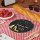 Stepping into 40 Gold Foil Confetti and Shoes 40th Birthday Party Plates. This modern and elegant woman's birthday party plates are perfect for a Stepping into Forty Birthday Party Celebration. The plates include gold shoes, golden foil confetti, black damask background and white script typography. Please contact the designer for customised matching items.