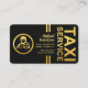 This is an all gold design. A dark grey cover is accentuated by a vertical gold lines design. Just beside this is the signage "TAXI SERVICE" which is set in faux gold. The cut off point at the gold lines has your prestigious name, the contact details and a slogan caption option to publicise your services. You can change the caption remarks to the slogan to suit your own service needs. Just beside this is a gold chauffeur's logo you can use.
