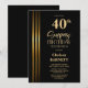 Gold Striped Black 40th Surprise Birthday Party Invitation