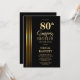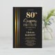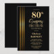 Gold Striped Black 80th Surprise Birthday Party Invitation