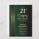 Gold Striped Black Green 21st Surprise Birthday Invitation