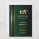 Gold Striped Black Green 65th Birthday Party Invitation