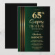 Gold Striped Black Green 65th Surprise Birthday Invitation