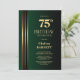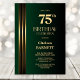 Invite your friends and loved ones to your birthday celebration with this modern gold striped black and green 75th birthday party invitation. The customizable text area in this invitation template allows you to include all the necessary details for your special birthday celebration, including the date, time, venue, and RSVP information. A variety of paper types and corner styles are available for your unique invitations, along with the option to download if you prefer a digital format.
