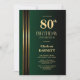 Invite your friends and loved ones to your birthday celebration with this modern gold striped black and green 80th birthday party invitation. The customizable text area in this invitation template allows you to include all the necessary details for your special birthday celebration, including the date, time, venue, and RSVP information. A variety of paper types and corner styles are available for your unique invitations, along with the option to download if you prefer a digital format.