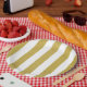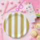 Gold Stripes, White Stripes, Striped Pattern Paper Plate