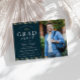 An elegant photo graduation invitation card with blue and white colours and a faux gold strips. The text details and image can be personalised.