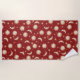 Miss Sun and Mr Moon in gold meet on this artful red beach towel.