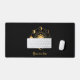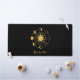 The centre sun graphic is surrounded by a circle of moon phases in gold on a black background. Add your name, company, brand or other special message to personalise this large desk mat in gold-coloured modern script text.