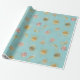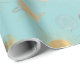 Gold Sun Moon Planets Space Blue illustration Wrapping Paper