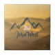 Gold sunrise personalizable mountains monogram. Vector drawn mountains in grey blue colour with a personalizable monogram and your name. In te background a stunning gold sunrise with fog in the valley and sun rays. Great gift from someone who loves mountains.