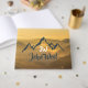 Gold sunrise personalizable mountains monogram. Vector drawn mountains in grey blue colour with a personalizable monogram and your name. In te background a stunning gold sunrise with fog in the valley and sun rays. Great gift from someone who loves mountains.