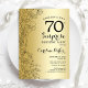Gold Surprise 70th Birthday Party Invitation. Glam feminine design featuring faux gold foil, botanical accents and typography script font. Simple floral invite card perfect for a stylish female surprise bday celebration. Can be customised to any age. Printed Zazzle invitations or instant download digital template.