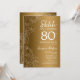 Gold Surprise 80th Birthday Party Invitation. Feminine glam design featuring faux gold foil, botanical accents and typography script font. Simple floral invite card perfect for a stylish female surprise bday celebration. Can be customised to any age. Printed Zazzle invitations or instant download digital template.