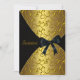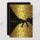 Elegant gold swirls on gold background with gold trimmed black overlay and black satin bow. Customise the back with your choice of font style, font colour, and background colour. Printed design.