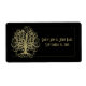 Elegant Gold Swirl Tree on Dark Earthy Tones Background with Stars. Weddings and Special Occasions. Labels Stickers. Use for Labels for WEdding Favours for guests or for Wedding Party. 3 sizes available Shipping Labels or Address Labels or Return Address Sizes. Romantic Tree Shipping Labels are large 3 3/4 inch by 2 inch so use to ship to a repeat shipping address (someone you ship to regularly) or delete the address and print them at home or use as large gift tags or CD labels - you can print the address or other homemade gift ingredients at home on your printer or handwrite with craft pens. So remove or delete/cut the example address. Neutral Warm Gold Tones and Earthy Hues Border Abstract Modern Swirling Tree Wedding Party Gift Tags Designs by Sandra Mack. Possible uses include: Gift tags, CD DVD Label, Homemade Gift Labels, Canning Jar Label, Jelly Label, Honey Jar Label, Wedding Party Dinner Table Food Labels, Wedding Favour Tag Gift labels, Name badges, Book nameplates, Luggage tags,